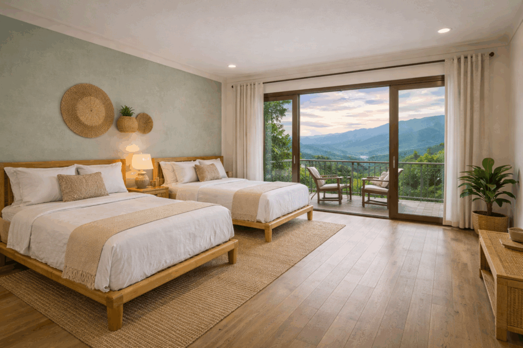 2 Queen beds | En-suite bathroom | Private terrace balcony | Mountain or rainforest views | Our Mountain Double Room...